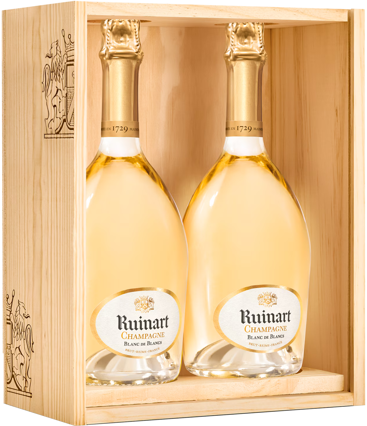 Founded in Reims in 1729 , Ruinart is considered the oldest Champagne house. Its identity is rooted in elegance, purity, and the promotion of Chardonnay, its signature grape variety that shapes the finesse of its cuvées. Located in the heart of Champagne, the house cultivates a recognizable style, characterized by freshness, aromatic precision, and masterful blending. The Blanc de Blancs Duo Gift Set perfectly illustrates this expertise, offering the most luminous expression of Champagne Chardonnay. Through its refinement and intensity, it embodies all the prestige of Ruinart.