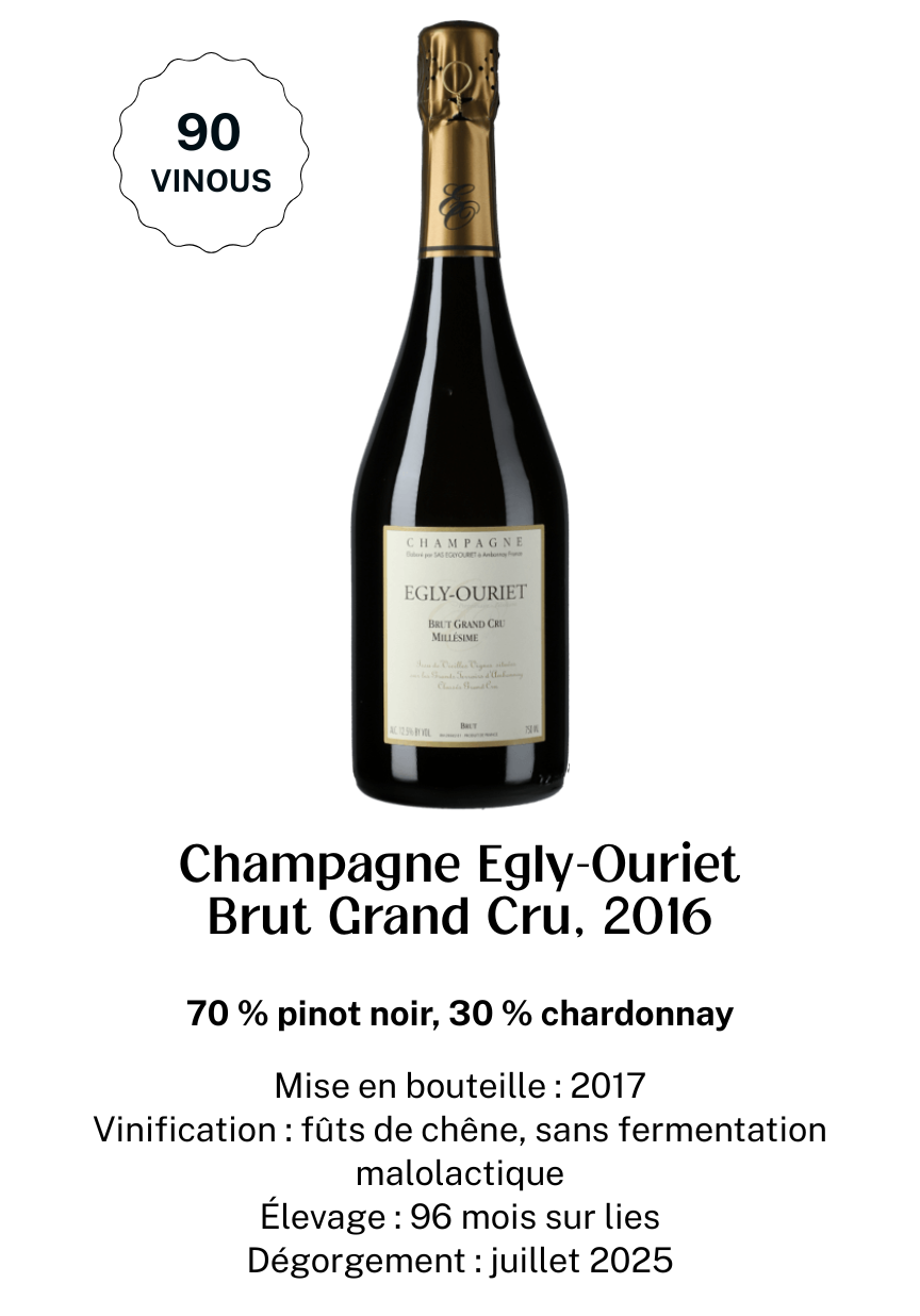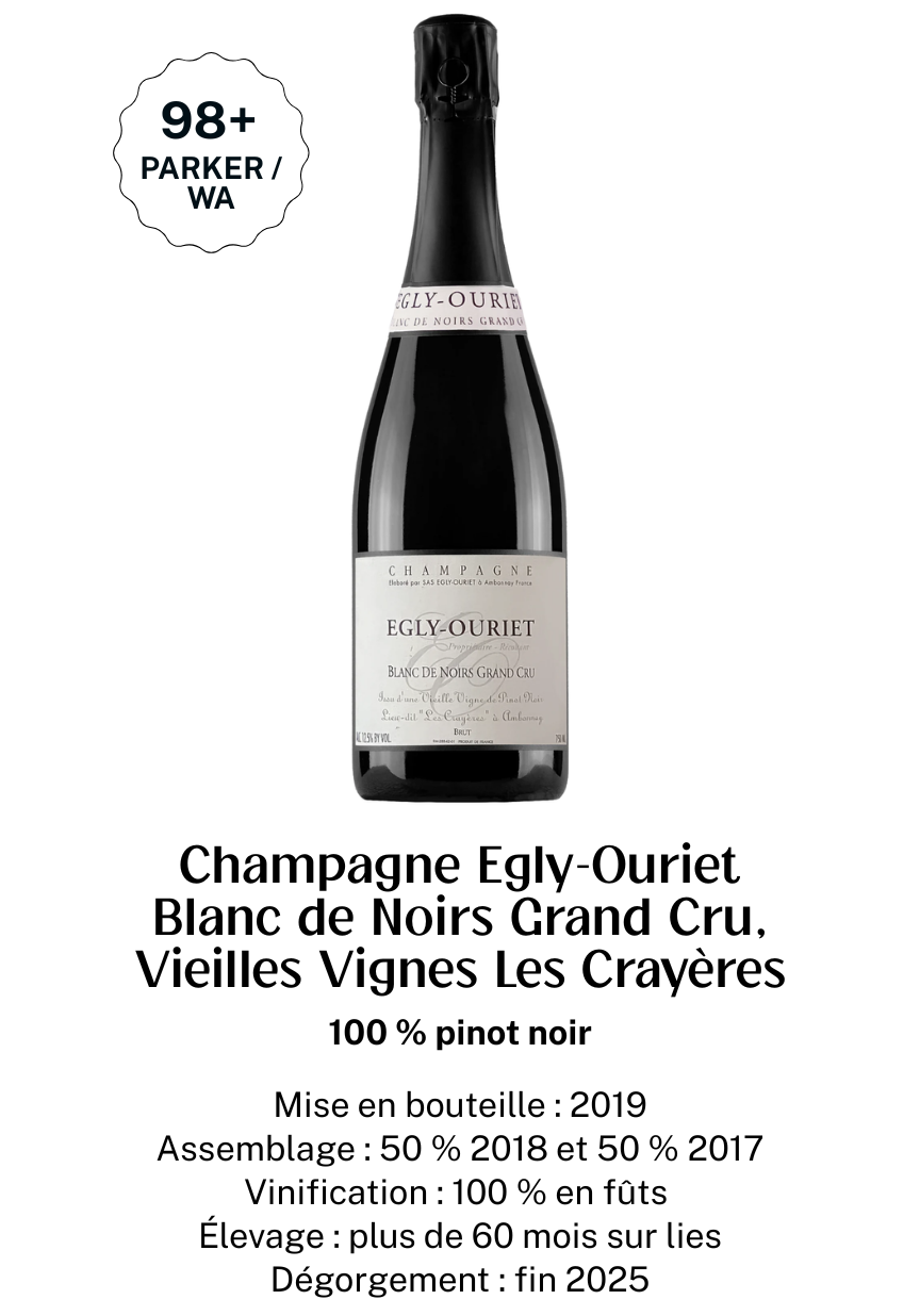 "Deze wijnen zijn zowel rijk aan aroma's en geconcentreerd als harmonieus en elegant, en nemen een belangrijke plaats in in de recente geschiedenis van de wijnbouw." Champagne. Als de regio nu wijnen produceert die de beste wijnen ter wereld waardig zijn, en als kleine wijnmakers nu de kwaliteitsnormen bepalen in een regio die lange tijd gedomineerd werd door grote handelaren, dan is dat grotendeels te danken aan Francis Egly.”